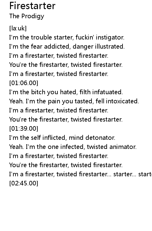 I'm a firestarter, twisted firestarter. |