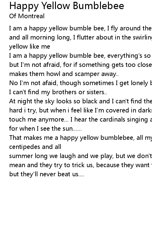 That makes me a happy yellow bumblebee, all my friends are beetles and centipedes and all |