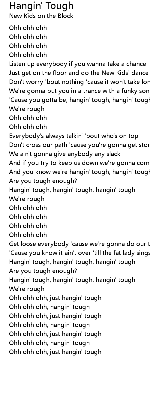 'Cause you gotta be, hangin' tough, hangin' tough, hangin' tough |