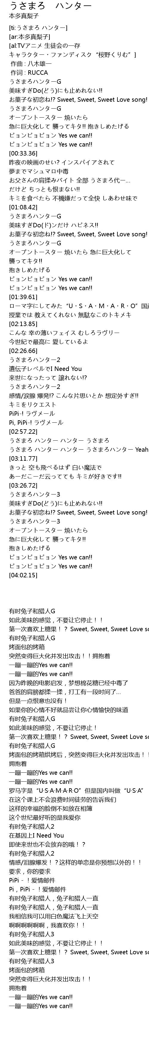 | [02:57.80] | うさまろ ハンター ハンター うさまろ |