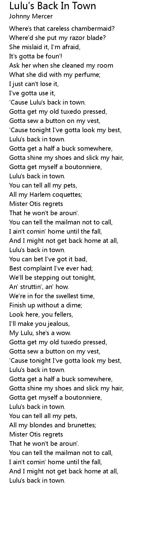 Lulu's Back In Town Lyrics