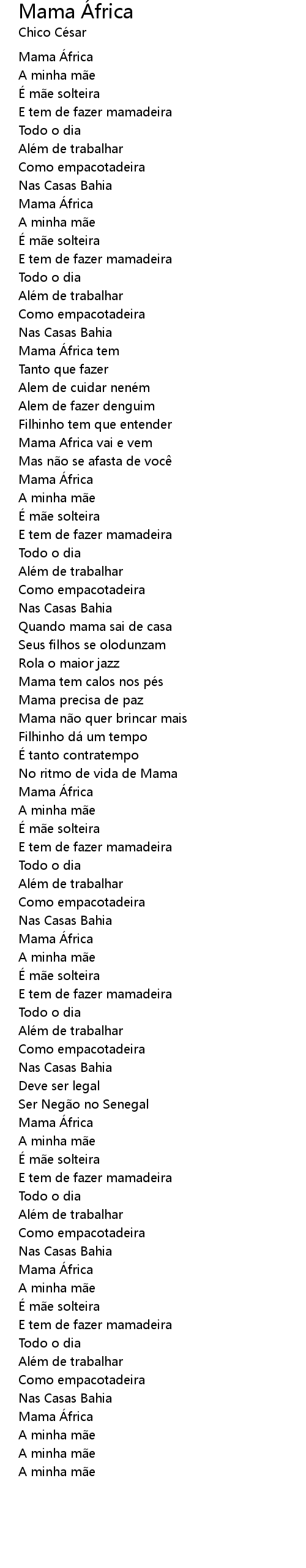 Mama África Mama Á frica Lyrics