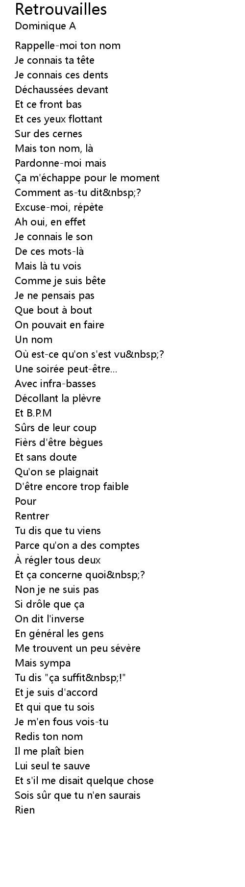 | Song | Retrouvailles |
