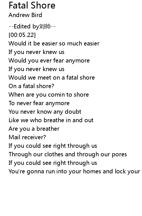 | [01:06.99] | When are you comin to shore |