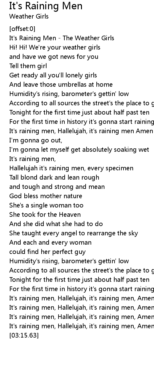 It's raining men, Hallelujah, it's raining men Amen |