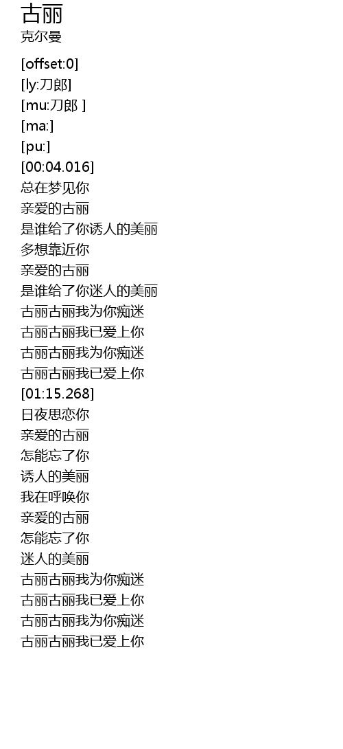 | [01:09.967] | 古丽古丽我已爱上你 |