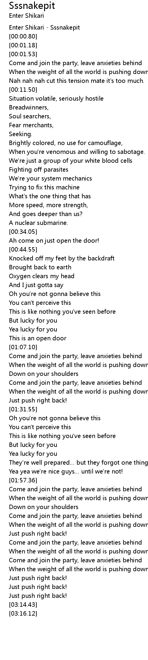| [00:00.40] | Enter Shikari - Sssnakepit |