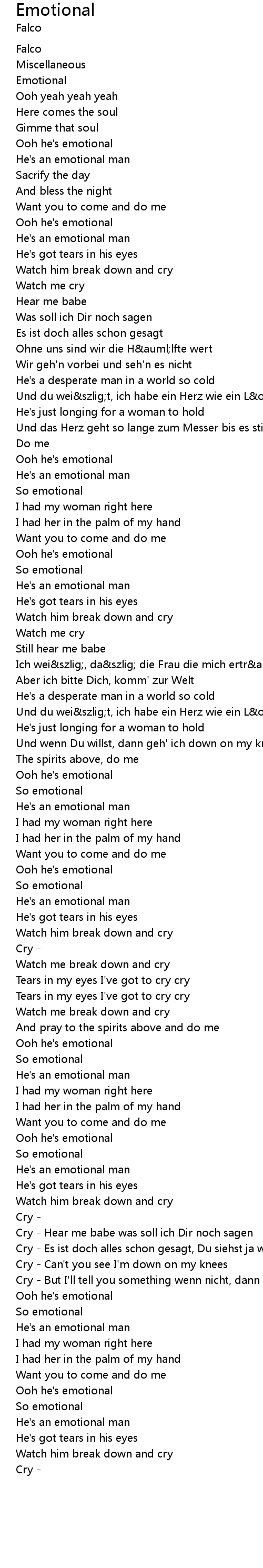 Cry - Hear me babe was soll ich Dir noch sagen |