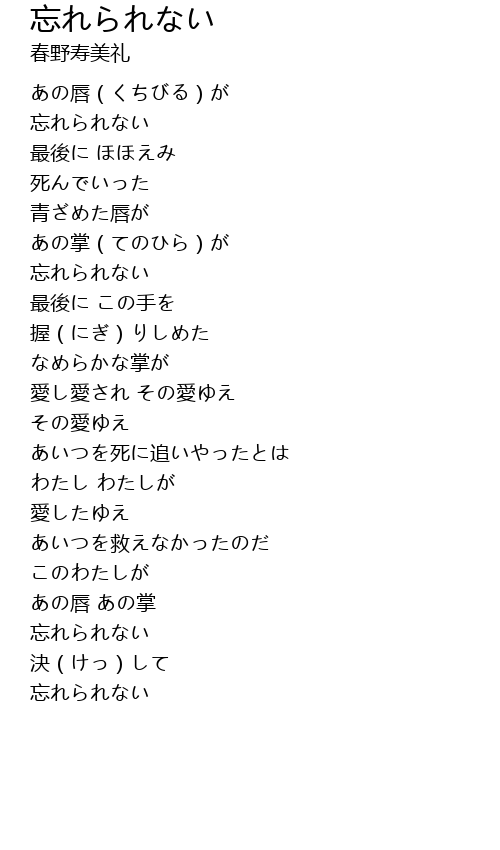 | [01:09.000] | 忘れられない |