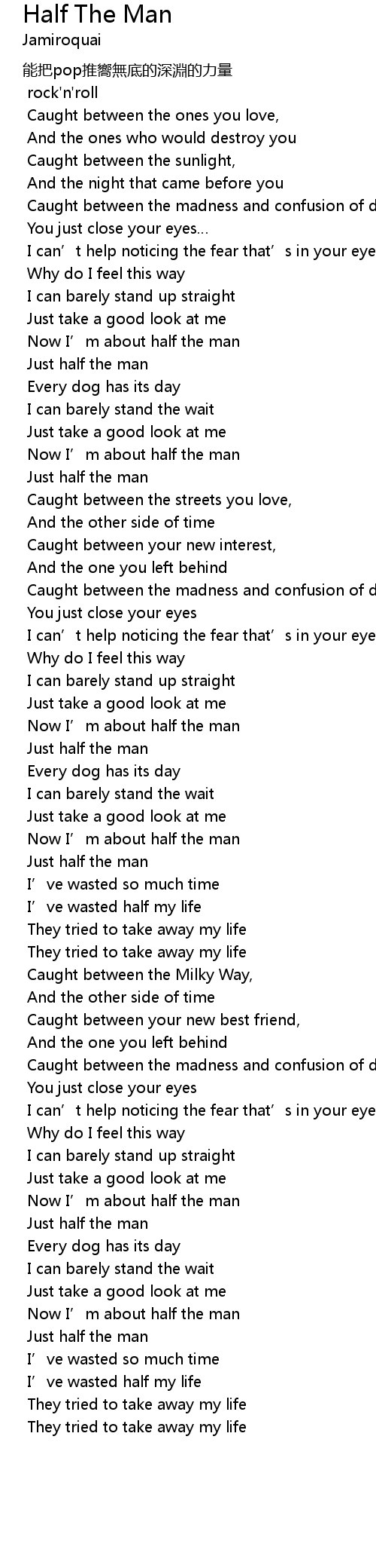 | Song | Half The Man |