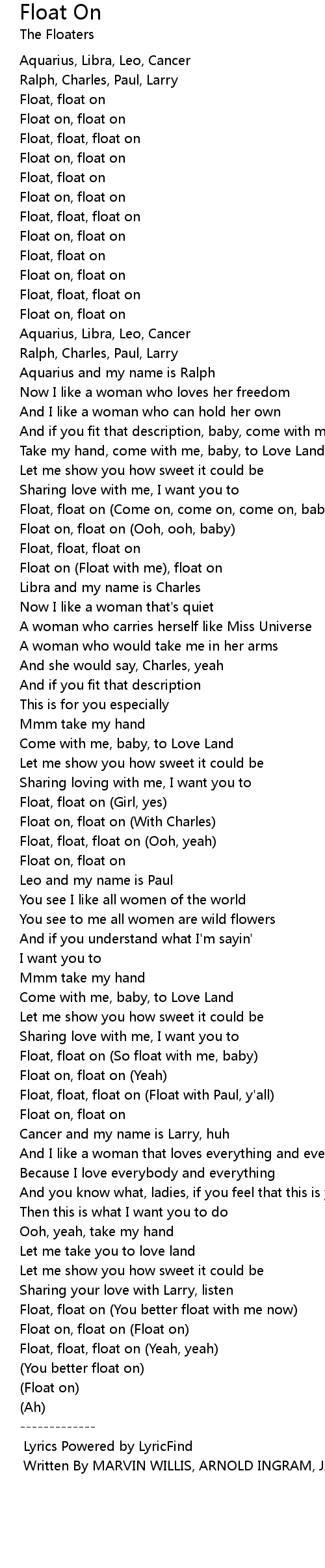 Float, float on (Come on, come on, come on, baby, yeah) |