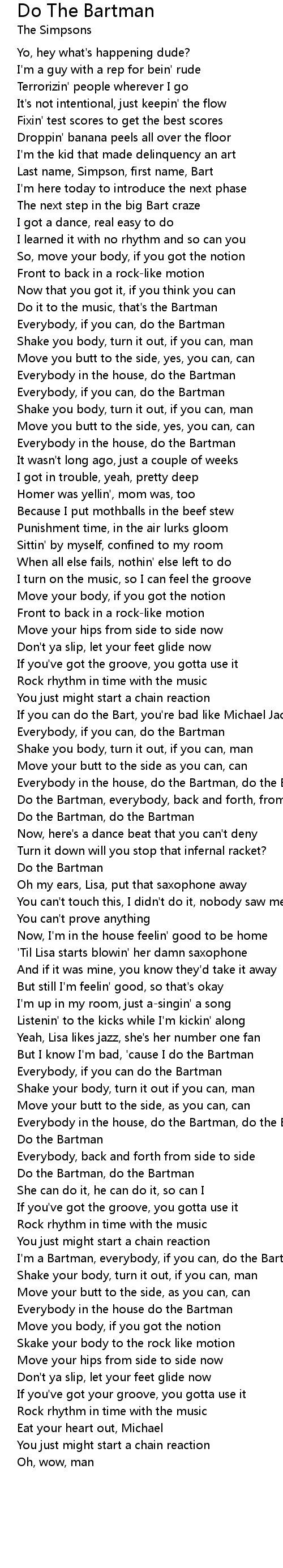 I'm a Bartman, everybody, if you can, do the Bartman |