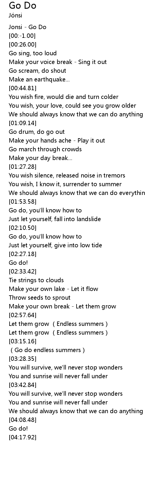 | [03:43.44] | You will survive, we' ll never stop wonders |