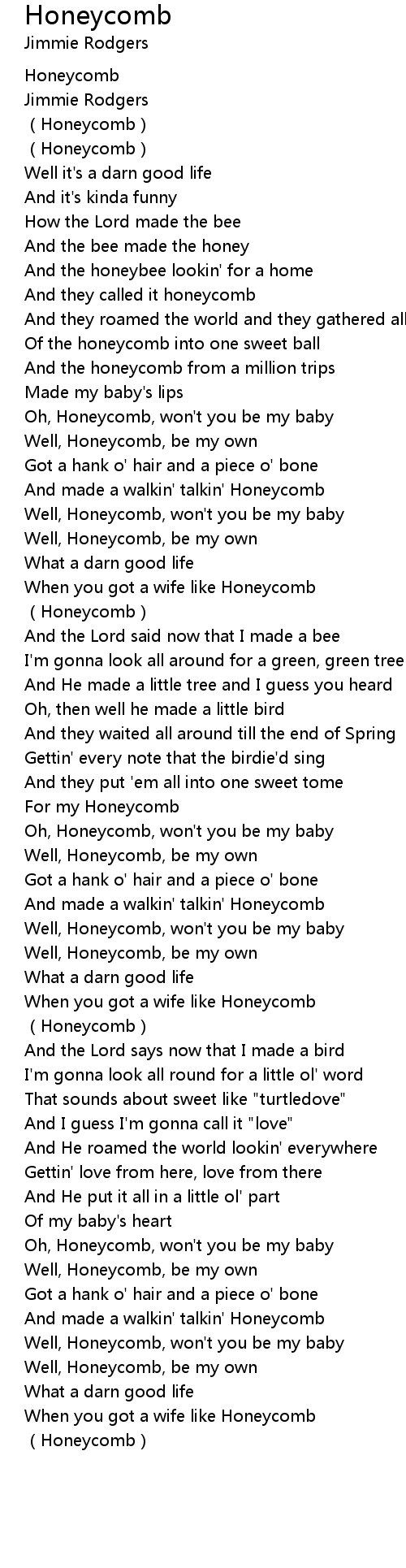 | Well, Honeycomb, won't you be my baby | |