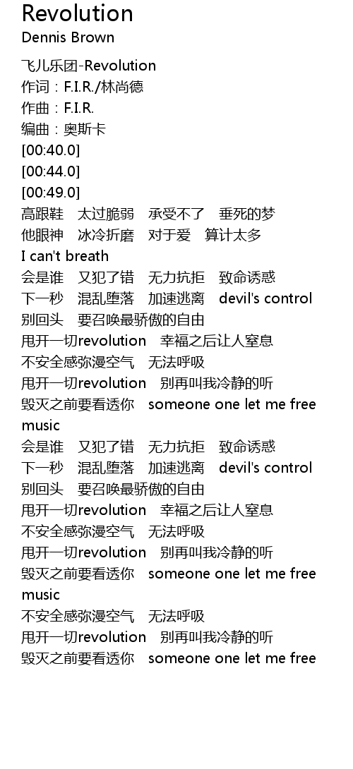 | [00:00.0] | 飞儿乐团-Revolution |