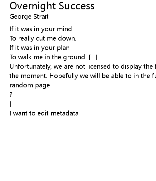 | Unfortunately, we are not licensed to display the full lyrics for this song at the moment. Hopefully we will be able to in the future. Until then, how about a | |