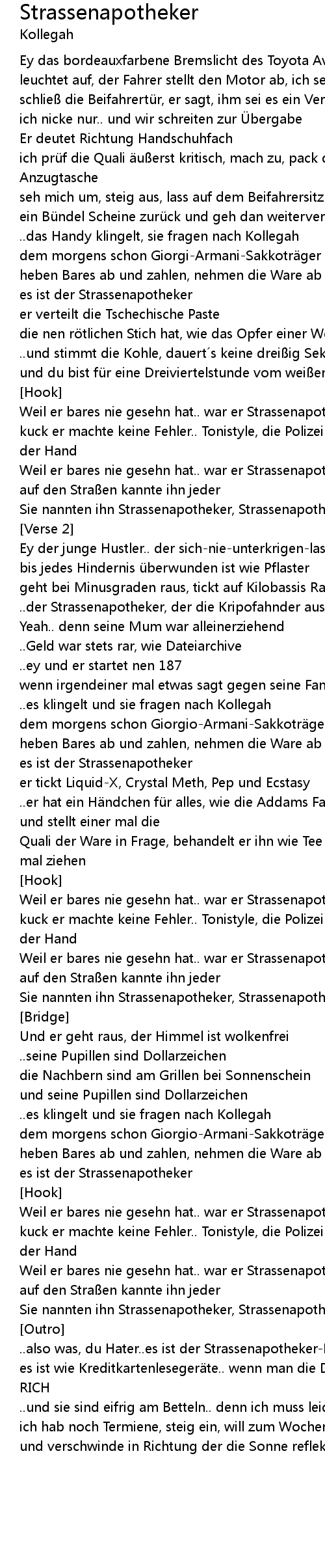 | ..also was, du Hater..es ist der Strassenapotheker-Profihustlershit | |