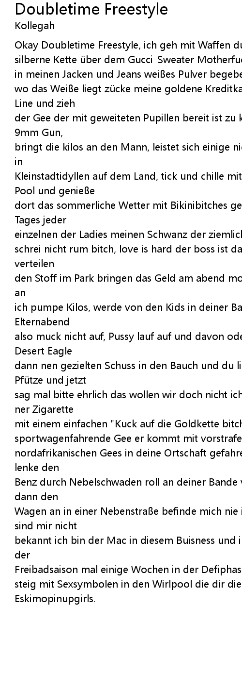 | Okay Doubletime Freestyle, ich geh mit Waffen durchs Streetlife | |