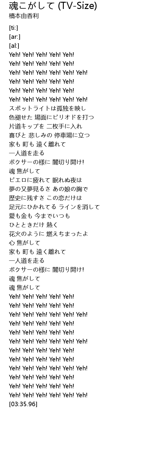 | [03:12.73] | Yeh! Yeh! Yeh! Yeh! Yeh! Yeh! |