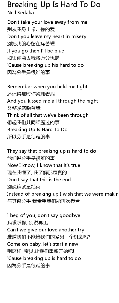 | ' Cause breaking up is hard to do | |