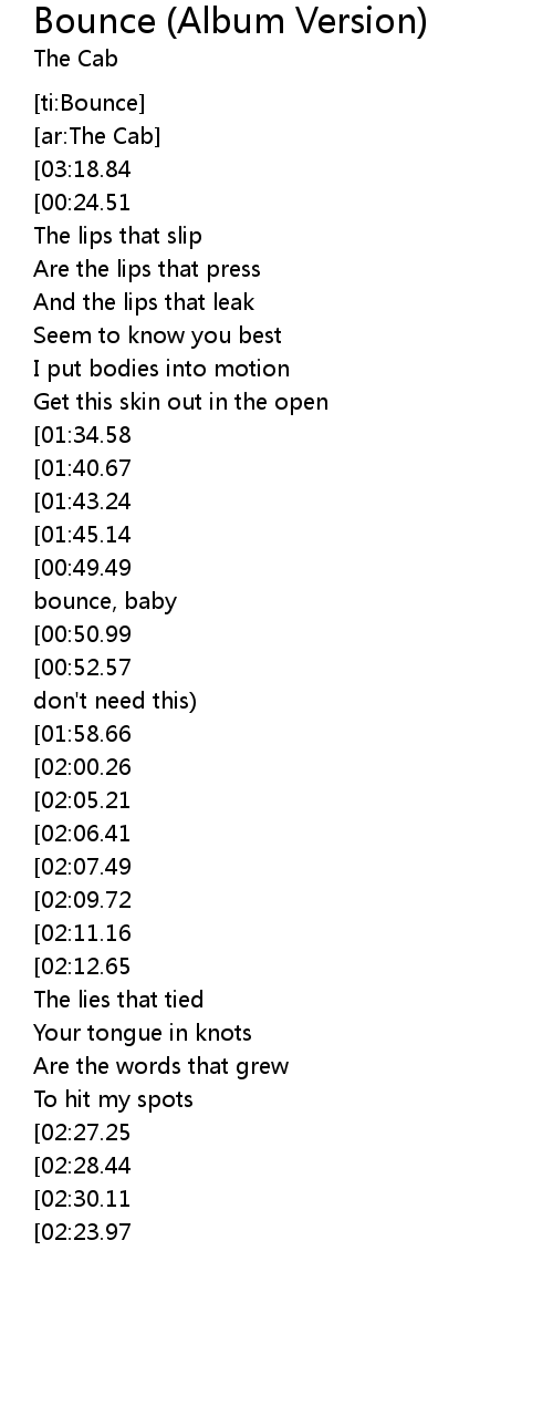 | [00:07.25][00:24.51][00:35.07][00:43.38][01:10.98][01:29.19][01:38.66][01:47.17][02:14.74][02:27.05][02:38.71][03:18.10][03:24.72] |