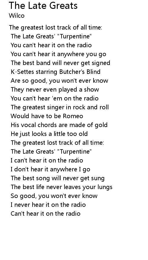 The Late Greats' "Turpentine" |