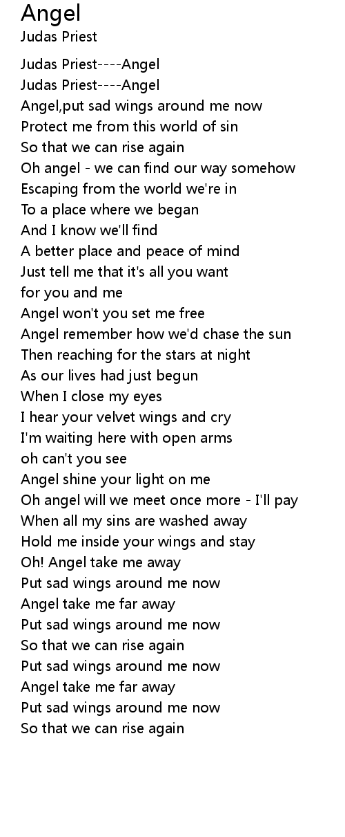Angel,put sad wings around me now |