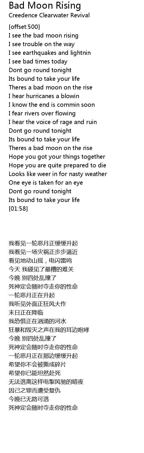 Theres a bad moon on the rise |