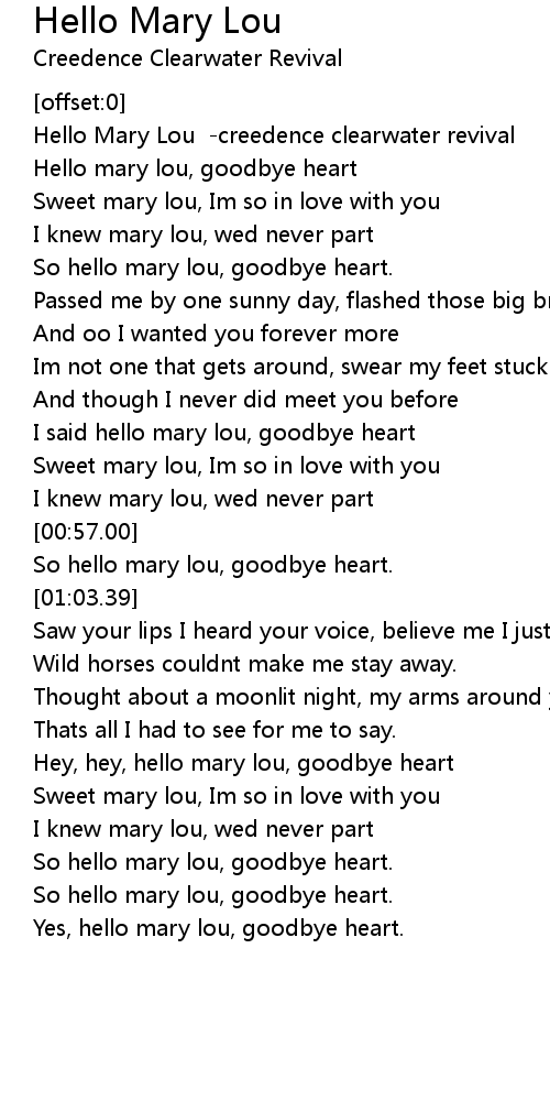 Hey, hey, hello mary lou, goodbye heart |