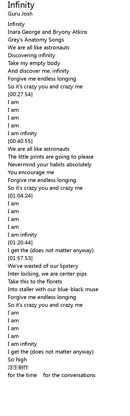 | [02:23.22] | I am infinity |