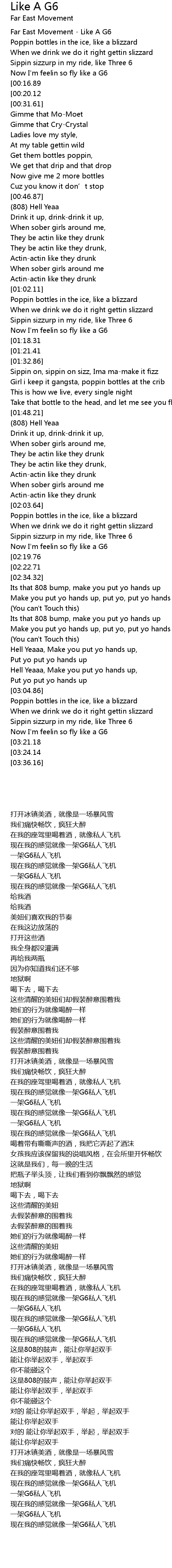 | [03:28.84][03:21.18] | Like a G6, Like a G6 |