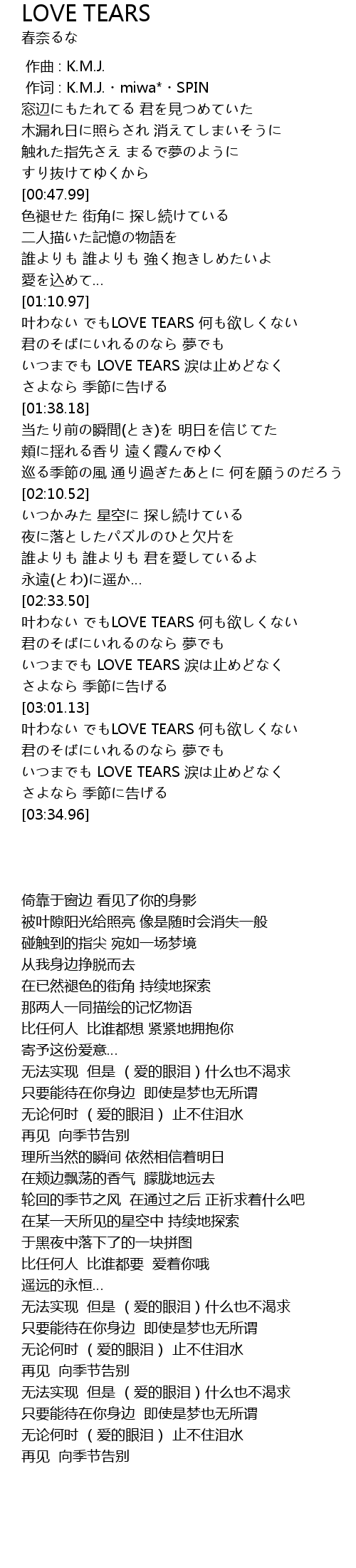 | [02:33.75] | yè LOVE TEARS hé yù |