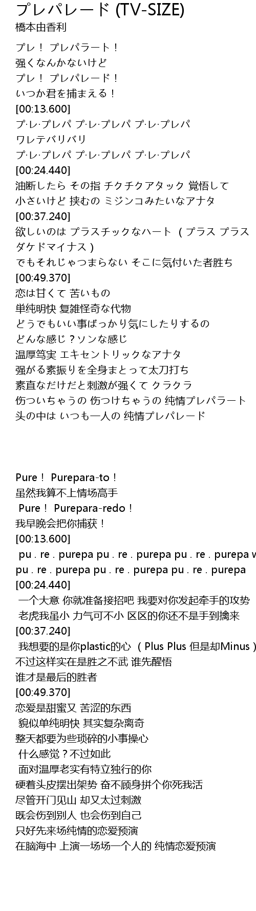 | [00:19.900] | プ·レ·プレパ プ·レ·プレパ プ·レ·プレパ |