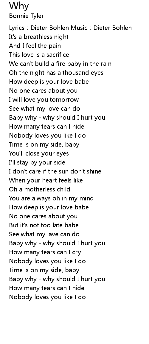 | Baby why - why should I hurt you | |