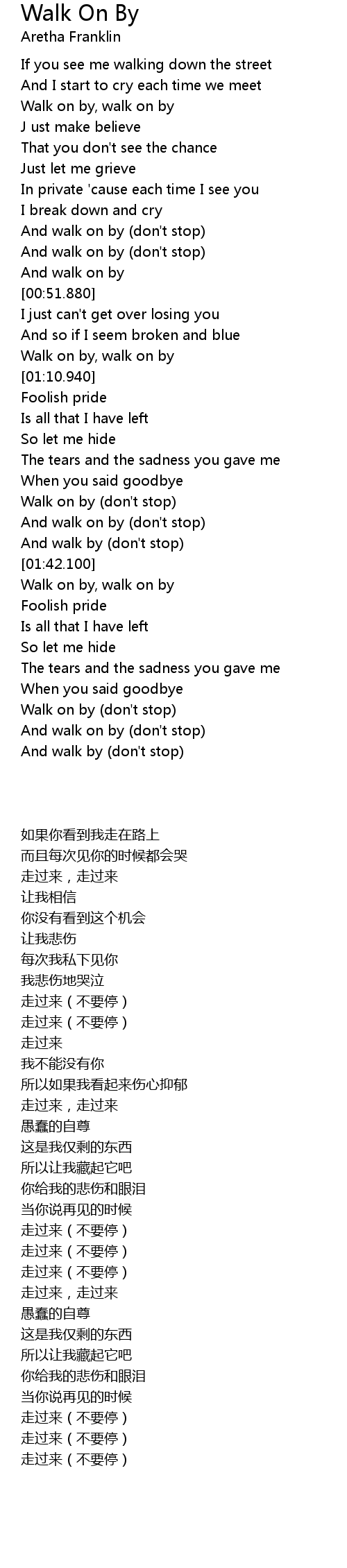 And walk on by (don't stop) |