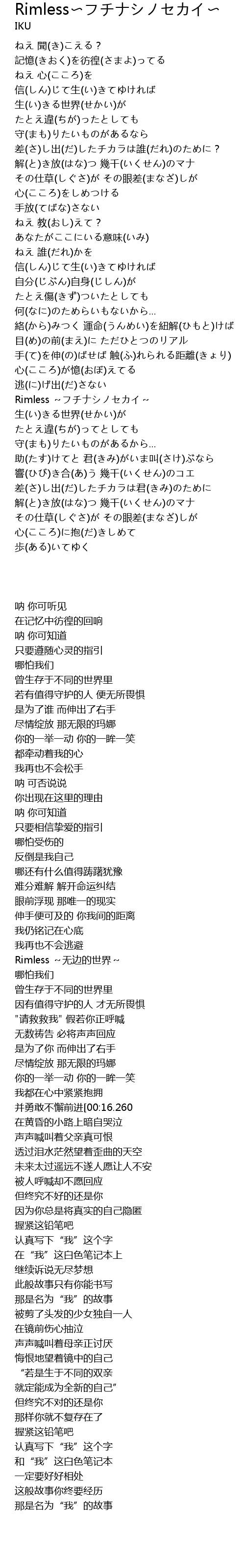 | [02:20.000] | Rimless ~フチナシノセカイ~ |