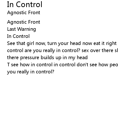 | T see how in control in control don't see how people wanna know i wanna know are you really in control? |