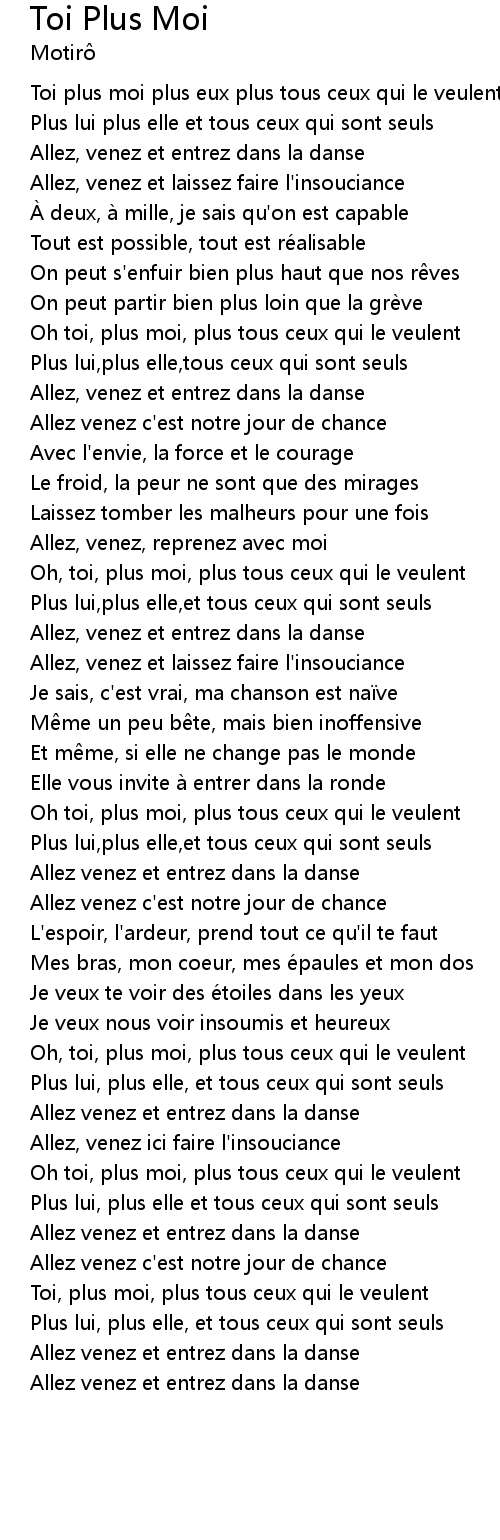 | [01:37.33] | Oh toi, plus moi, plus tous ceux qui le veulent |