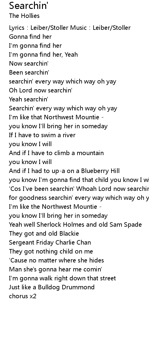 | 'Cos I've been searchin' Whoah Lord now searchin' | |