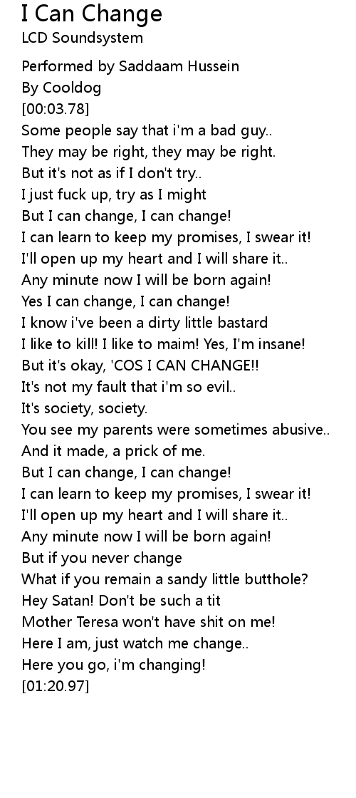 But it's okay, 'COS I CAN CHANGE!! |