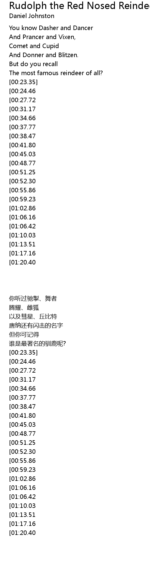 | [02:23.68][00:59.23] | "Rudolph with your nose so bright “ |