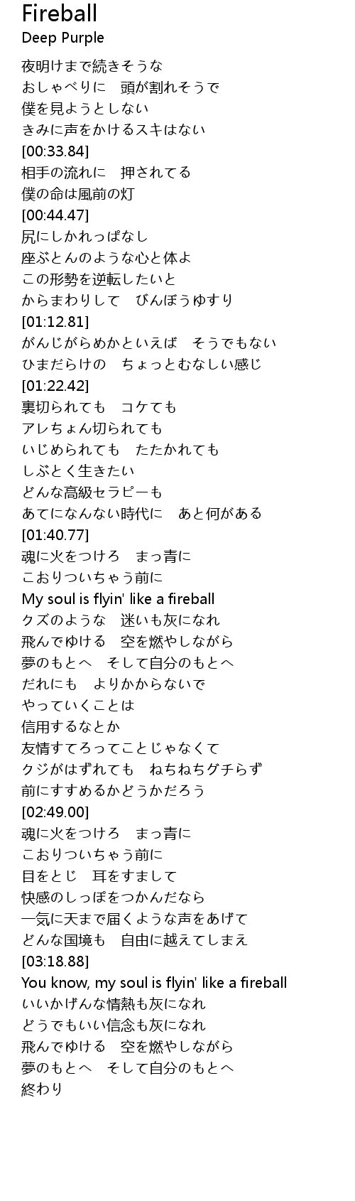 | [03:19.29] | You know, my soul is flyin' like a fireball |