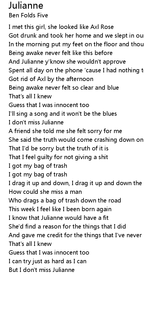 But I don't miss Julianne |