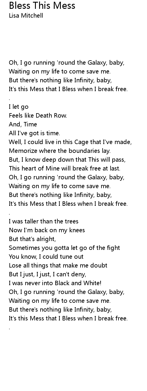 | [01:34.31] | It's this Mess that I Bless when I break free. |