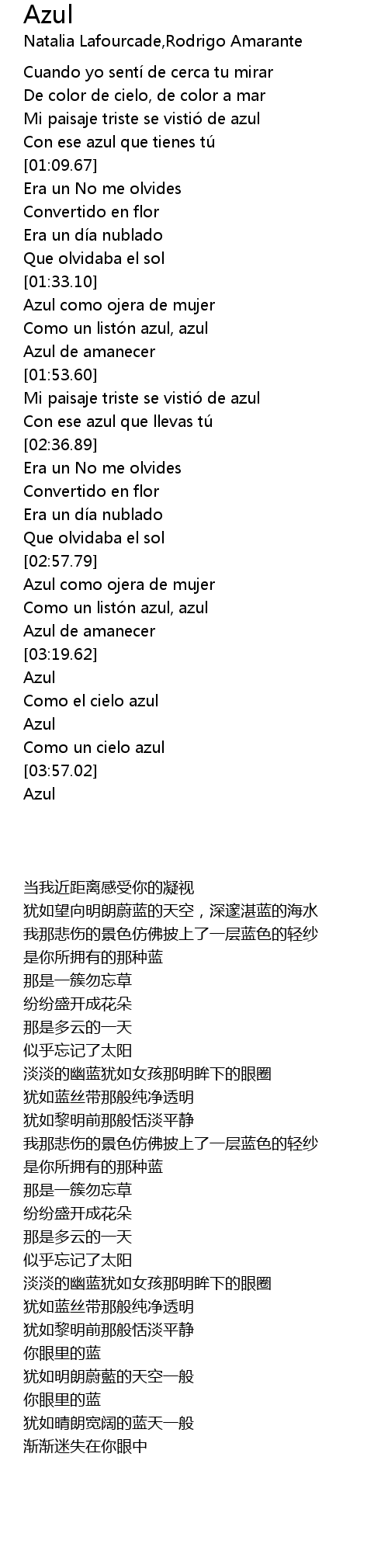 | [00:51.10] | Mi paisaje triste se vistió de azul |