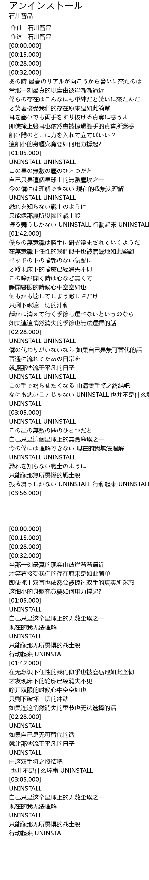 | [03:47.000] | 振る舞うしかない UNINSTALL 行動起來 UNINSTALL |