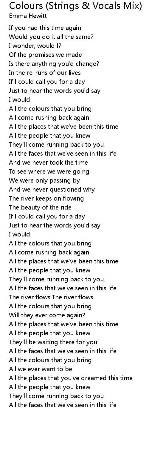 All the colours that you bring |