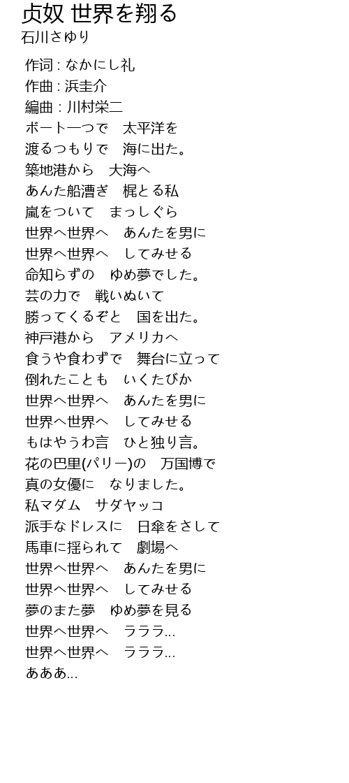 | [03:52.583] | 世界へ世界へ あんたを男に |