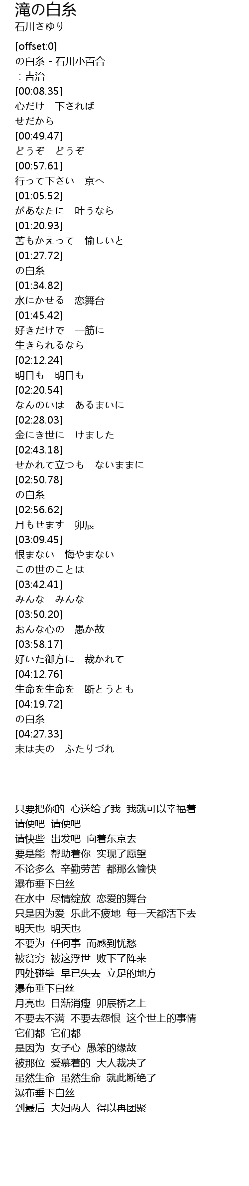 | [00:01.52] | の白糸 - 石川小百合 |