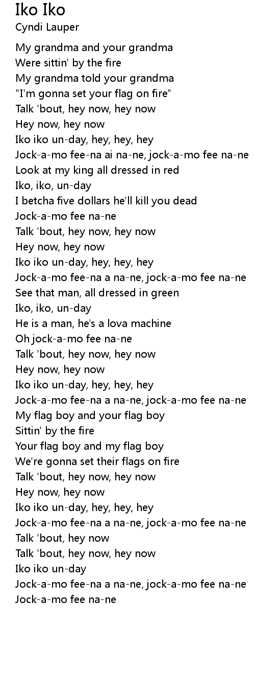 Jock-a-mo fee-na ai na-ne, jock-a-mo fee na-ne |